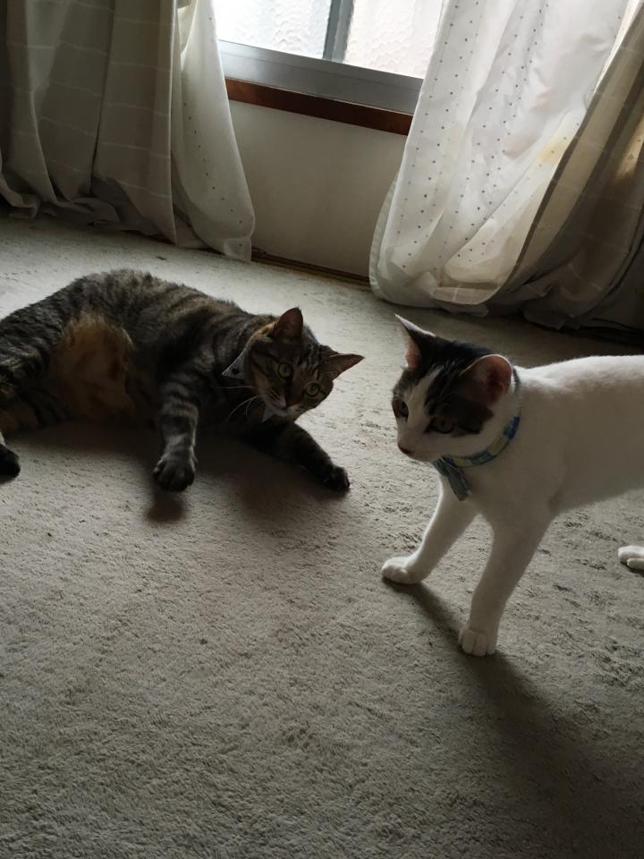 ただ、ゲンの近くをミルクが通ると、ゲンは気になるのかミルクと遊びたいのか😅