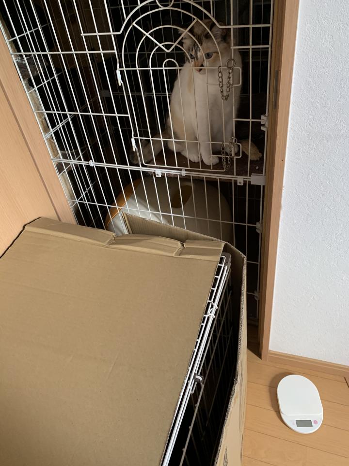 (ちなみに我が家はケージ飼ではありません。ケージの下の扉は取り外してあり、出入り自由!それぞれの猫の逃げ場等として使用しております。なので、1匹に1つずつのケージがそれぞれの好きな部屋に置いてあります。)