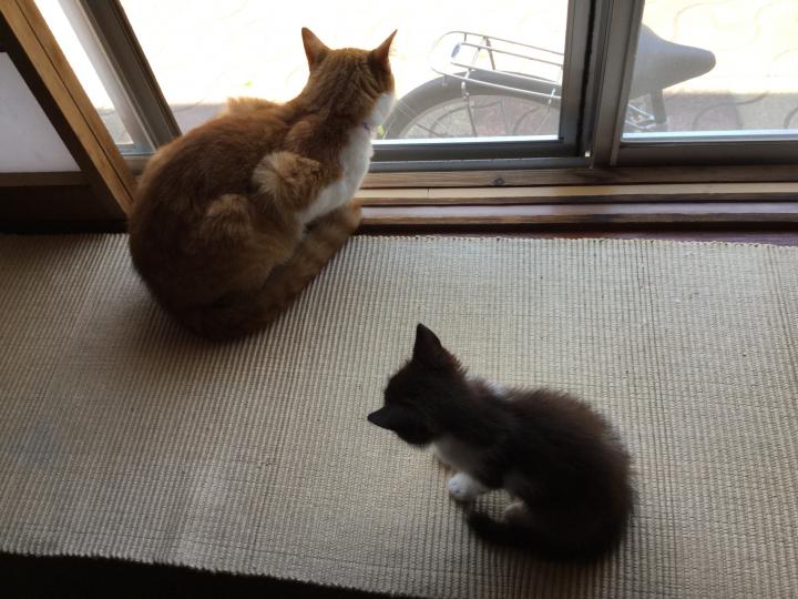 こむちゃんに 怒られています、、それでもチョッカイを出したい チビ太。