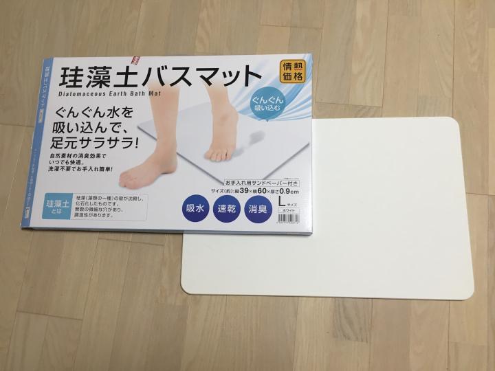 お昼休みにドン・キホーテに買い物に行くと珪藻土マットが40x60サイズで999円だったのでゆずポンのために購入しちゃいました。