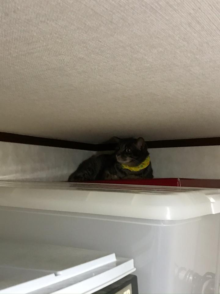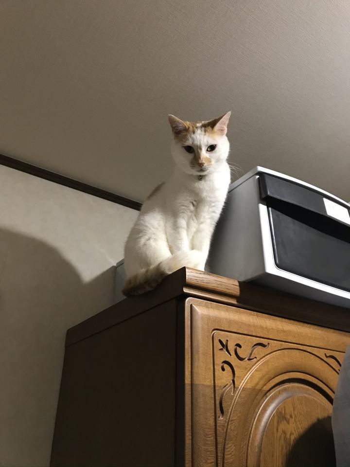 さくらちゃんがタンスの上にいると、