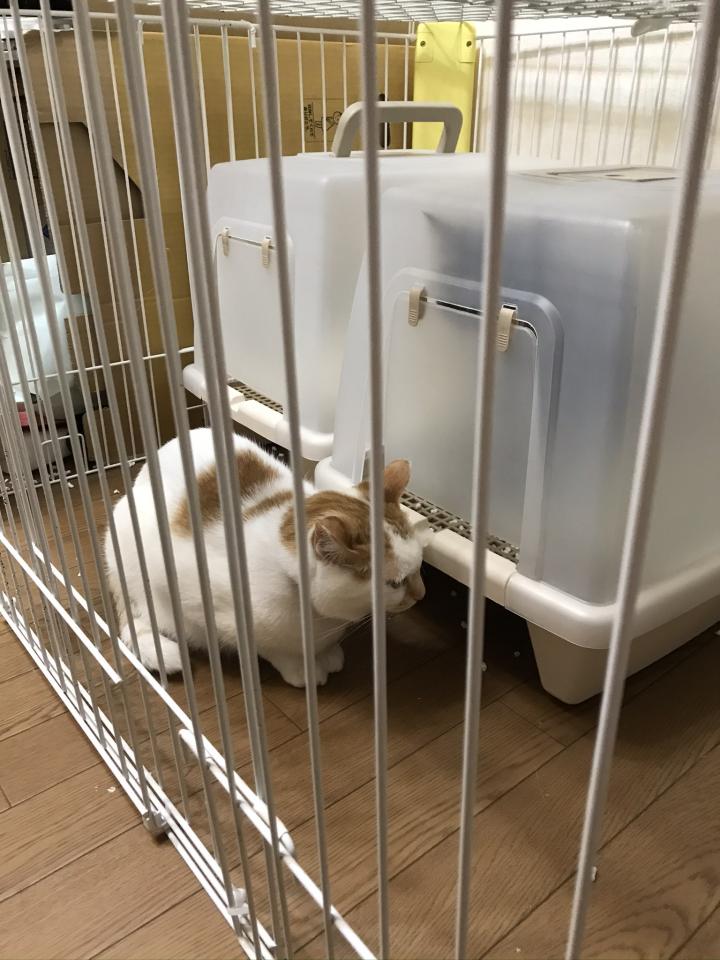 ケージの中のさくらちゃんのお皿をチェック!