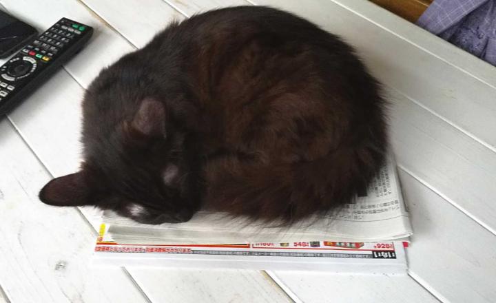 どうしてだか、新聞の上で丸くなって寝てる・・・