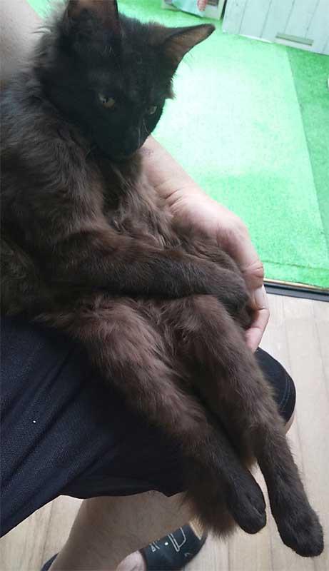 しかし、家では大きな顔で家中を走り回ってるジルくんですが、ここでは私の脇に頭を突っ込んで超大人しい子に変身してました。典型的な内弁慶ニャンですね。