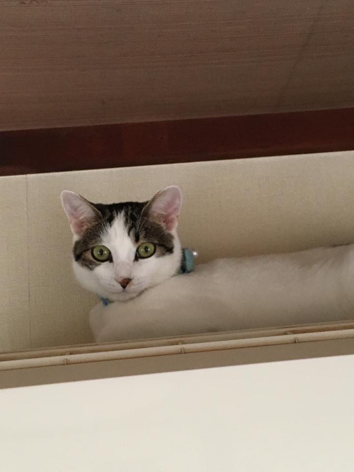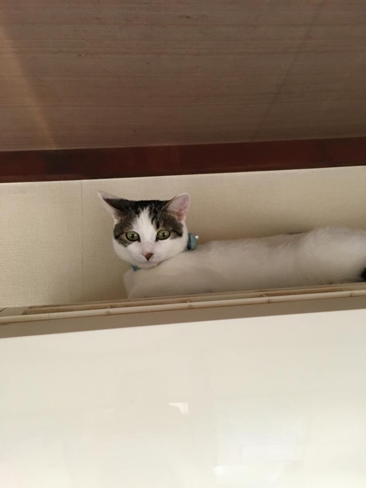 掃除機から逃げ惑った結果、そこが1番安全と思ったんでしょうね😅