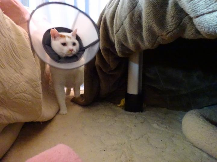 後、病院へ来るときはテープとか外して来いと言われました。獣医の手間が増えるからって、