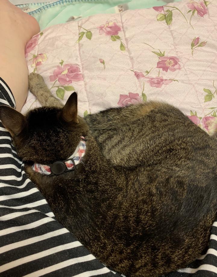 ノンちゃんはいつも夜寝る時は私と一緒で、股の間で寝るんだけど足が痺れるんよねぇ。