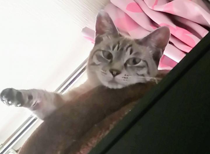 と思ったら案の定、キャットタワーから滑り落ちてきました💦💦
