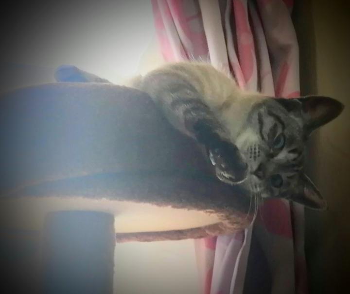 10時近くまで寝ていたようで、起きたらシャルルも 起きたにゃ?という表情でキャットタワーから覗いていました、