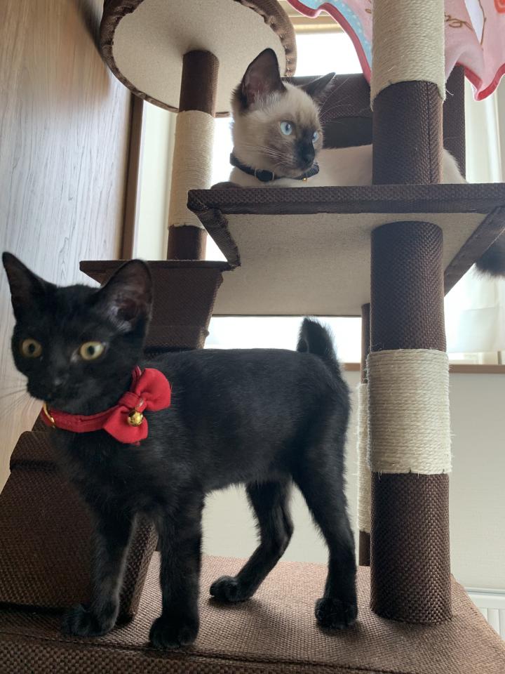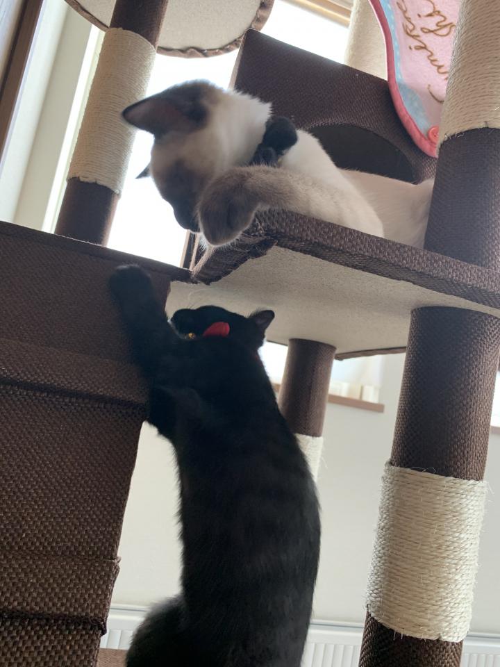 キャットタワーを買ったら、カーテンへの攻撃がなくなった気がする…✨