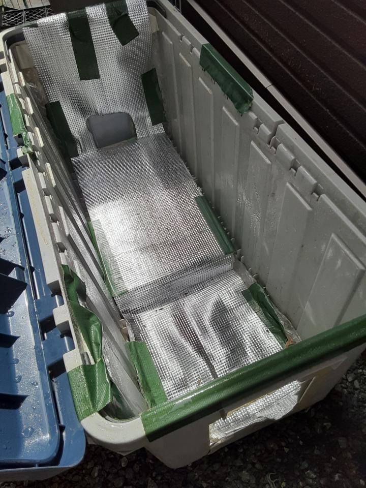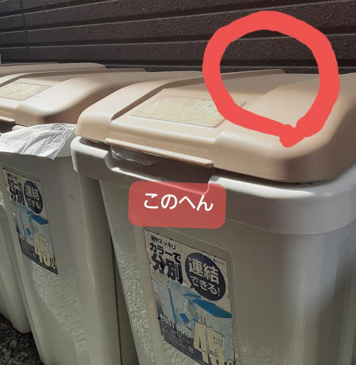 用意した段ボールを出て、すぐそばの外用ゴミ箱のコンテナの上に座っていた黒い固まり発見‼️約束守り待っててくれたんです。