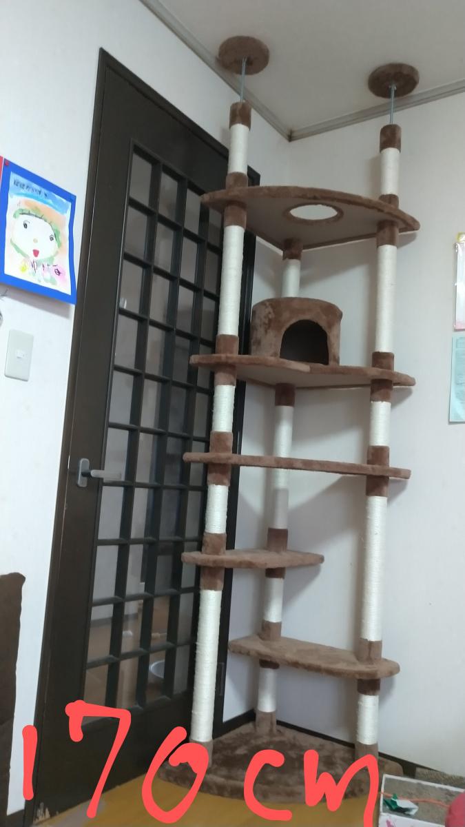 こちらは新しく購入したタワー。跳躍力ハンパないしらせは2ステップで一番上まで上がれますが、もちろんステップが沢山ついているのでラミさんも登れます。ただ、隠れ家が小さいので体の大きい猫ちゃんには向いていません。