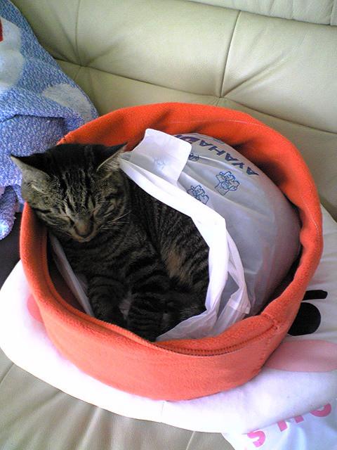 予想通りすんなりは入ってくれなかったので、大好きなビニール袋で