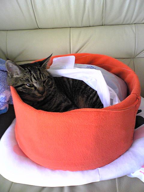 フリースの中にはこれまたいらなくなったクッションの中身を使用でふわふわ感を演出。