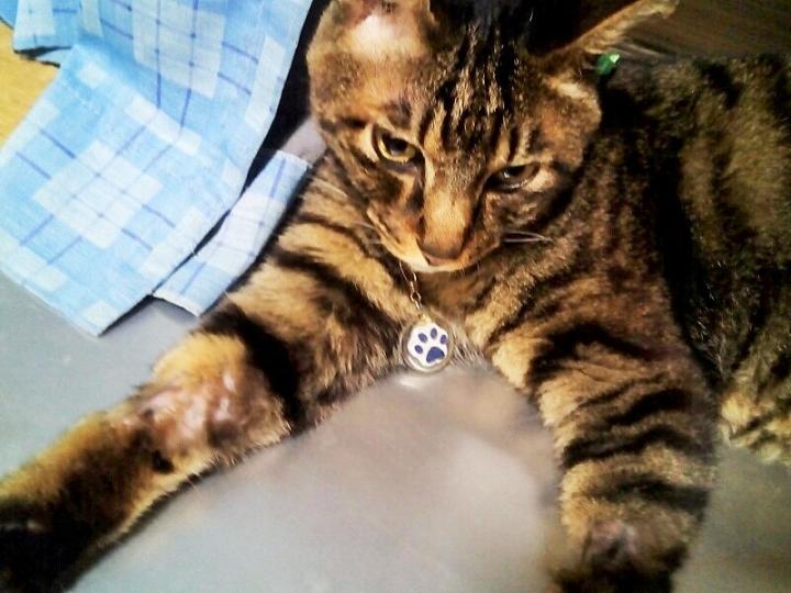 ずーっと顔をのせて小声で鳴いてる。声が枯れた模様。