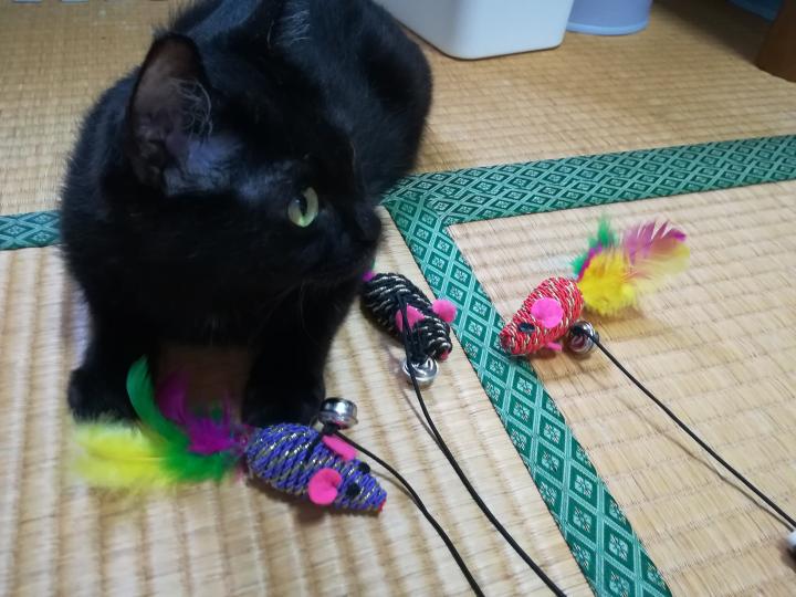 ここは飼い主の腕の見せ所で、クロちゃんに捕まえられないようネズミを逃げさせます。