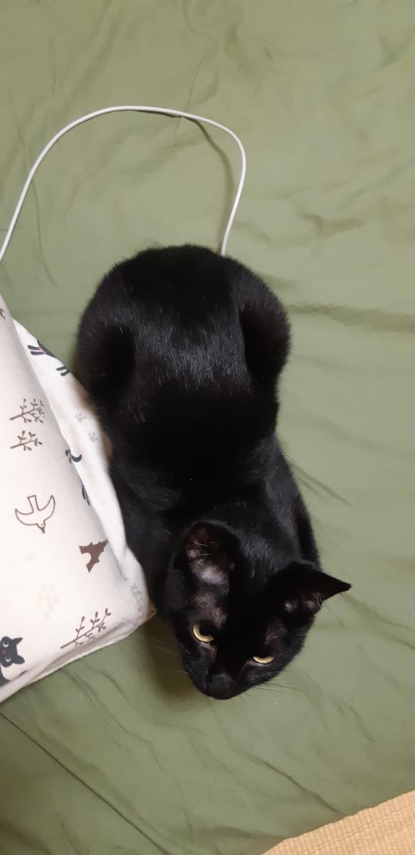 最近なぜか、カリタたちが出勤する頃にはベッドに乗って寝始めます。