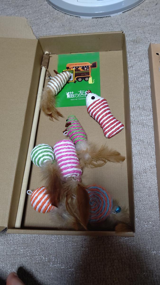 違う友達からもらった、私の誕生日プレゼントが入っていた段ボールで遊ぶりゅーじ。