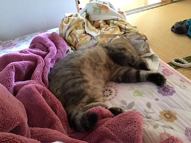 でも、個人的に「本当にうちに慣れてるんだな」と思ったのは…ご主人のお布団の横半分を占拠して寝ている時σ^_^;