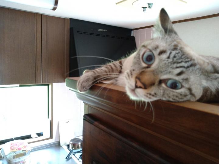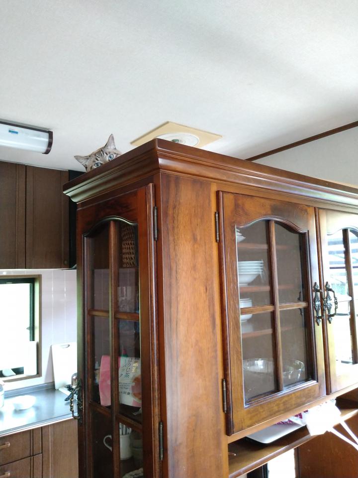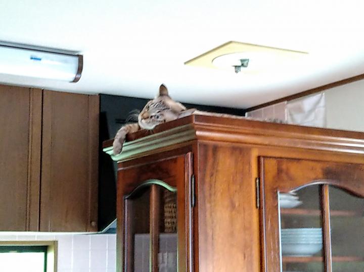 この棚の下にダイニングテーブルがあるので、ご飯を食べているときにちゅらが降りてくると少し大変なのですが。