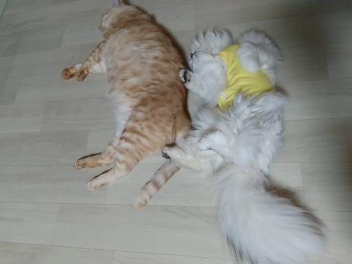 首からお股にかけて、まるで鎧兜のような毛玉だったのでバリカンしたんだったっけなぁ。