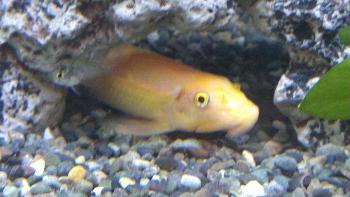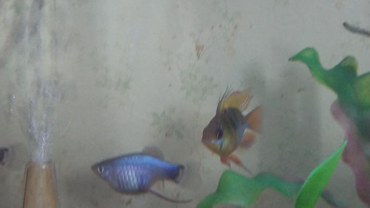 黄色でブルーの蛍光カラーの魚はラミレジー青い魚はブルーミッキーマウスプラティ