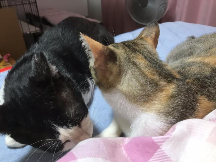 活発になりつつ猫たちをもう一度ケージに戻ってもらいます。