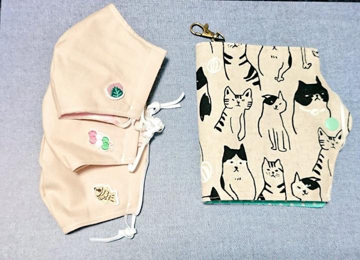 マスクとマスク入れ。ミシンをだましだまし作るのに3日も。。