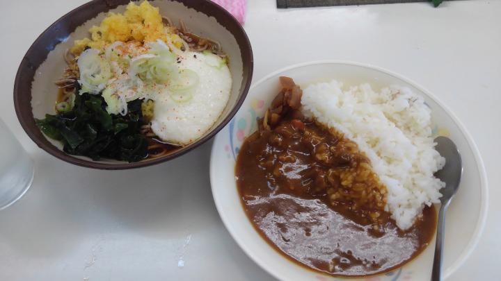 ご飯は、とろろ飯・ネギ飯・玉子かけご飯・ミニカレーから選べる。この日はミニカレー🍛