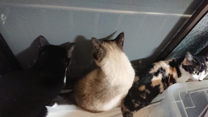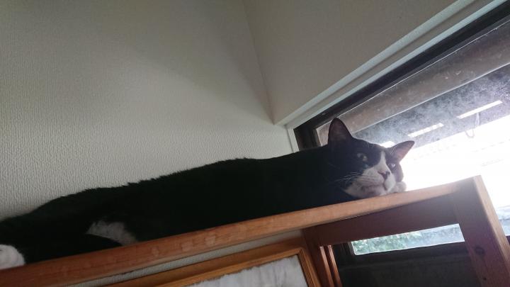 花火では驚かないんだねぇ。我が家はどこでも後追いにゃんこ。