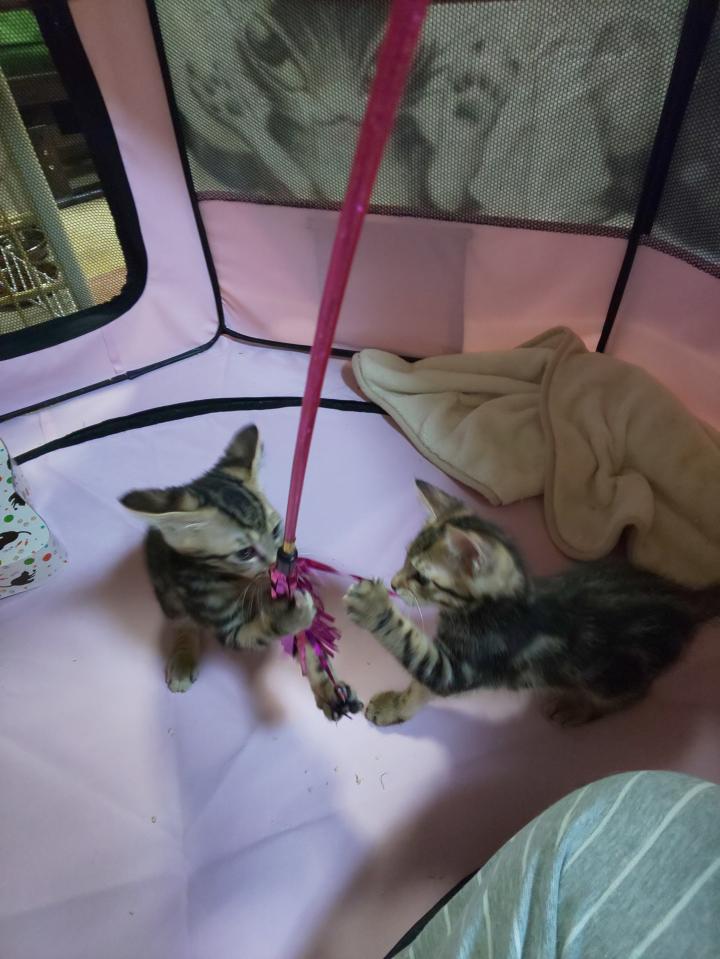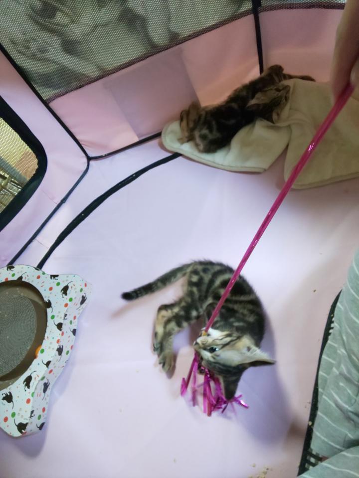 クロム君とチャム君はこのキラキラ猫じゃらしに夢中です