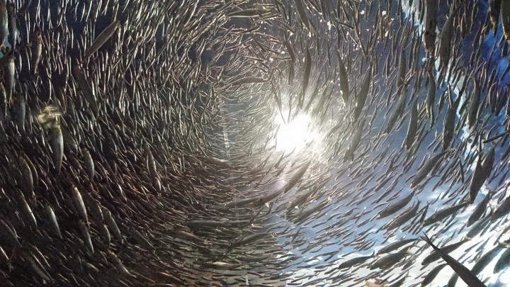 上を見上げれば魚が渦巻いてる~。