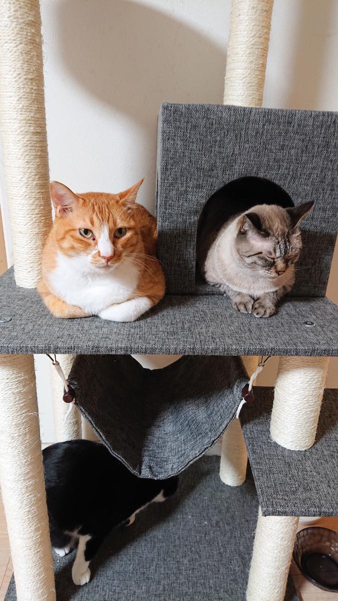 キャットタワーにもすぐに慣れる我が家のニャンズ