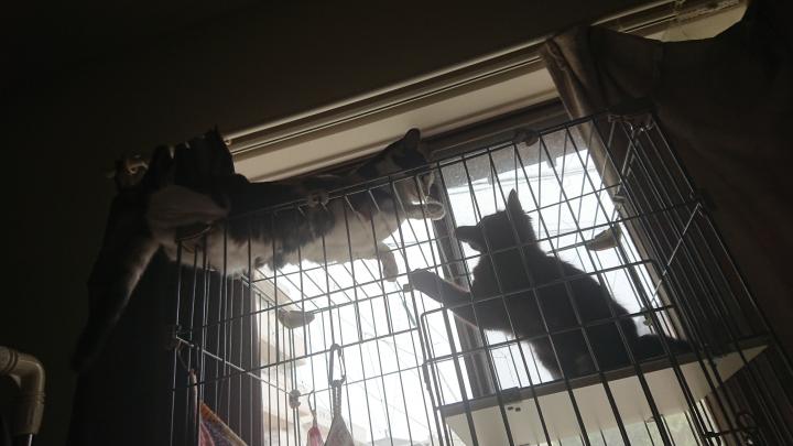 昨日の深夜爆睡していた高虎君はなんと、私の目の前でキャットタワー最上階から転落。
