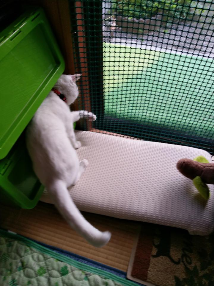この写真は昼間ですが、ゆうべは夜中の2時半頃からずっとカリカリしては中に入り込んでいたんです
