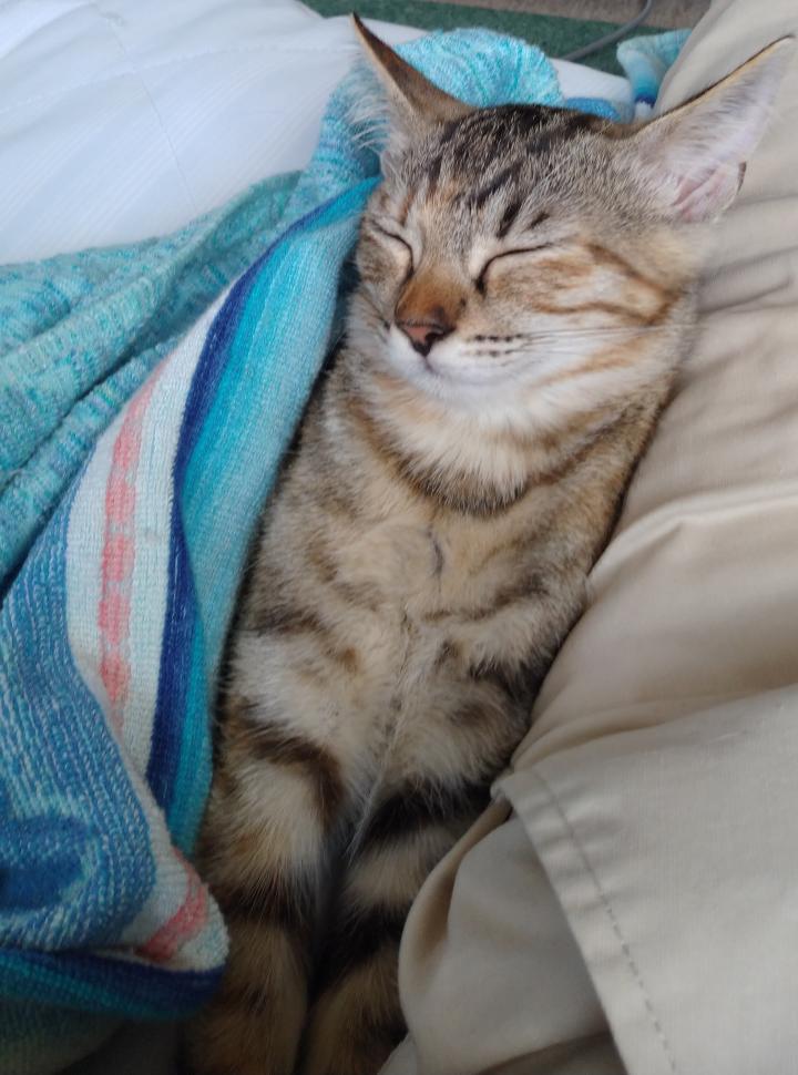 8/14 1.6kg 昨日変えたごはんはあんまりたべなかったので、今晩もごはんを変えてみたら、わりとよく食べる。昨日あんまり食べなかったからだけかな?今日一緒にゴロゴロしてたときの写真↓