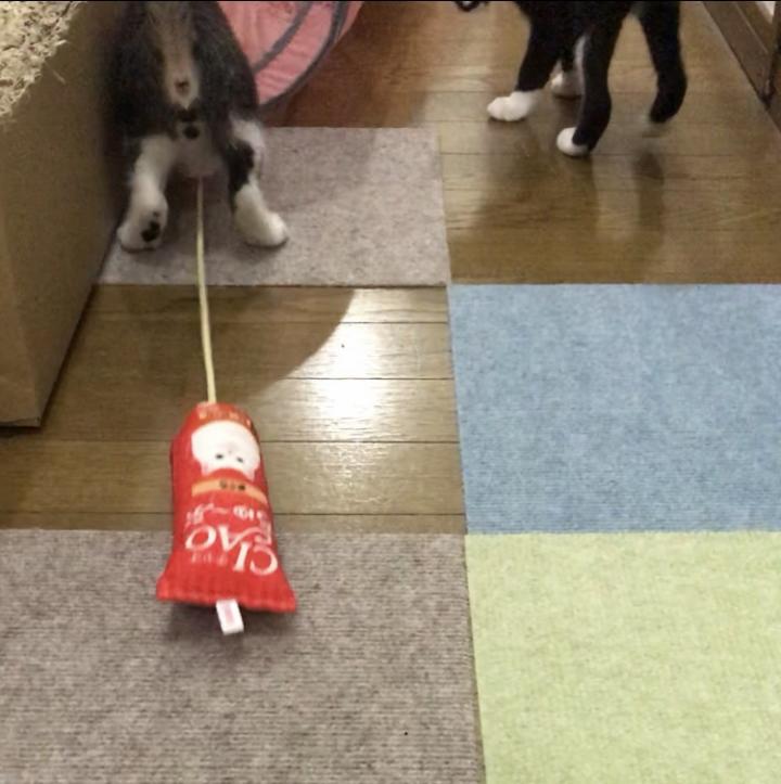 『誰にも渡しません!』と言わんばかりに、またお尻にちゅ〜るをぶら下げながら、咥えて爆走していくボーちゃん😂