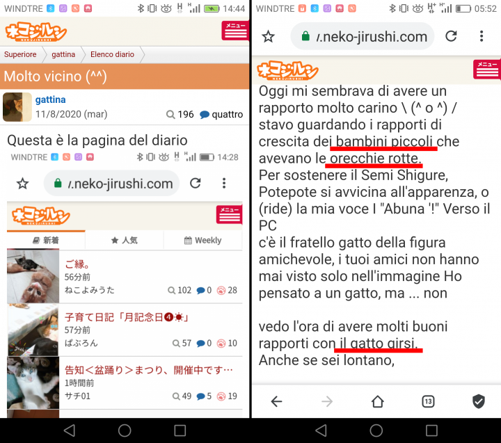 gattoの文字が目立ちますが、伊語でのネコ…私のハンネも『仔猫♀』(笑)