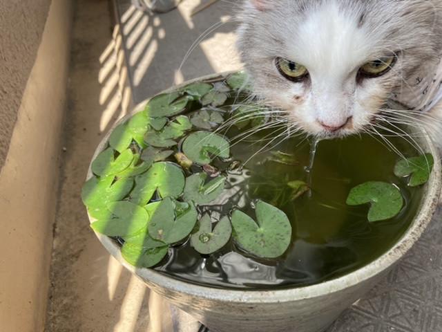 週末はベランダに出て、外の風を浴び、睡蓮鉢の水を飲み(笑)、日向や日陰で寛いでいたので、なんとか明日、また朝になったらベランダに行こうね。