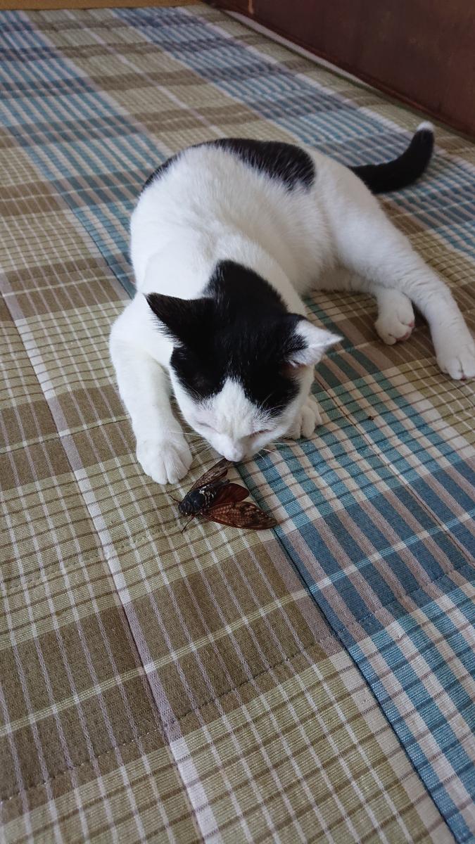 つきちゃん大興奮。お楽しみのところ水を差すようで悪いがセミが可哀想になり、半殺しになる前に取り上げて、逃がした。捕まえてきたことを大いに誉めてから、次はオスのセミだといいねビービー鳴くから面白いよ、と教えてあげた。