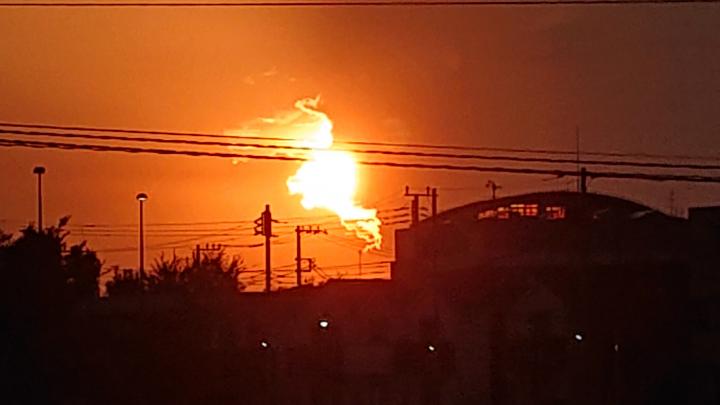 この日、キッチンがオレンジ色に染まり、思わず外に出てみると、この景色が見えました。