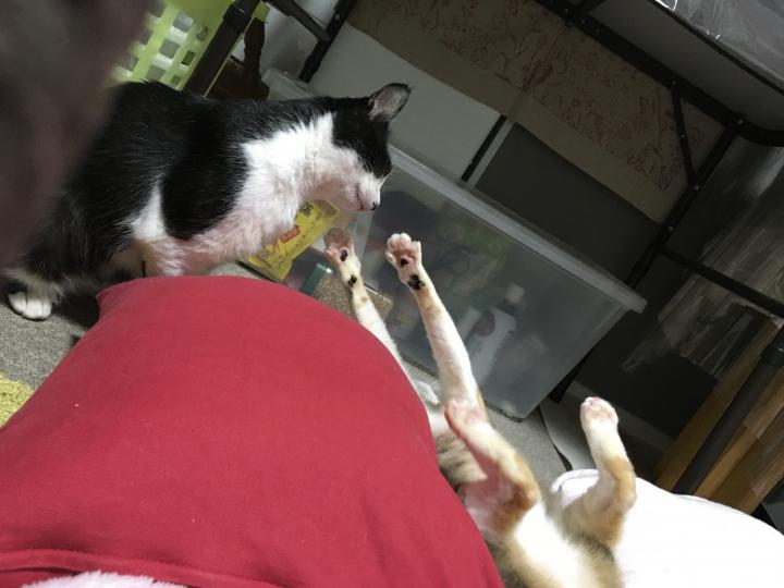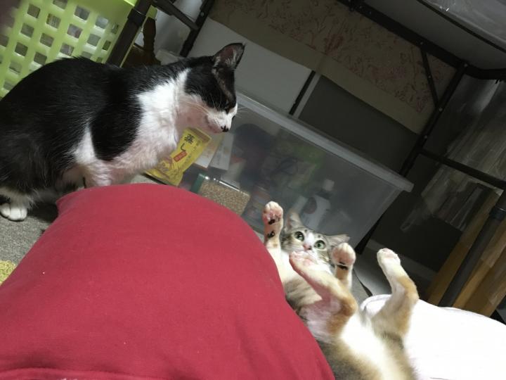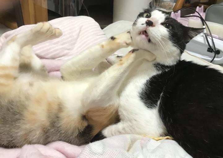 ミケちゃんがけりけりを仕掛けてきても、怒らない。