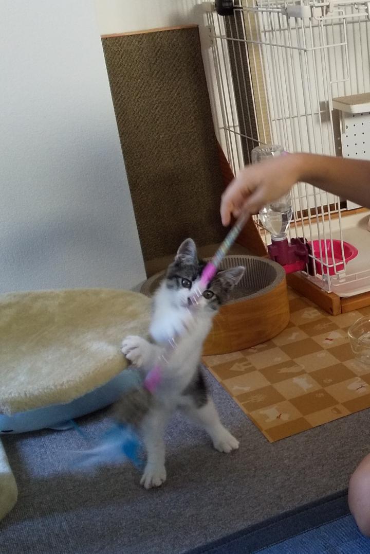 子猫の「むーくん(仮)」は部屋に入ると「ご飯なのー?遊ぶのー?」という感じで飛び出てくるように。