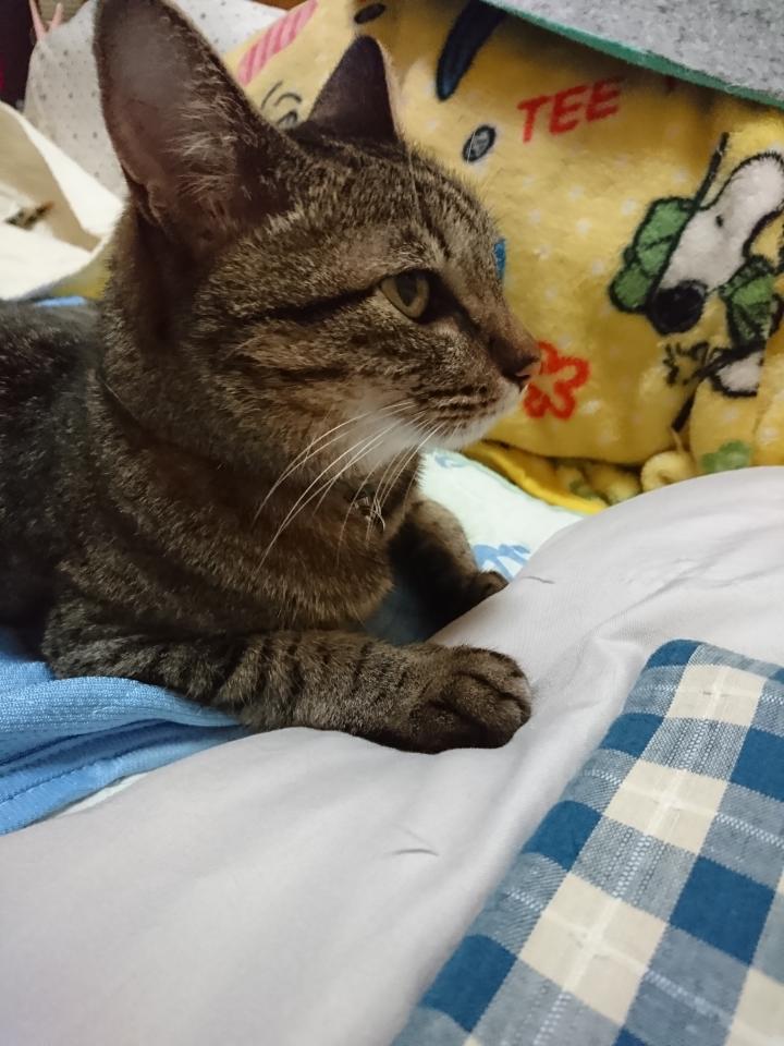 後ろに写っているスヌーピーのタオルケットは、お嫁入りした時(2ヶ月半から3ヶ月)に