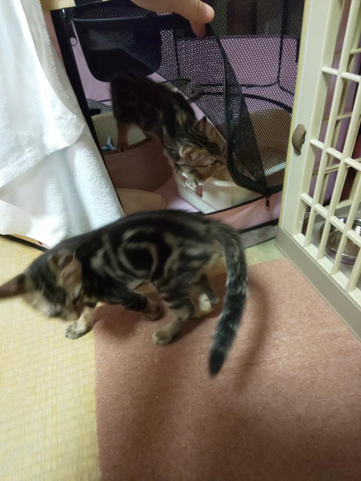 子猫たちは興味津々な感じだけど