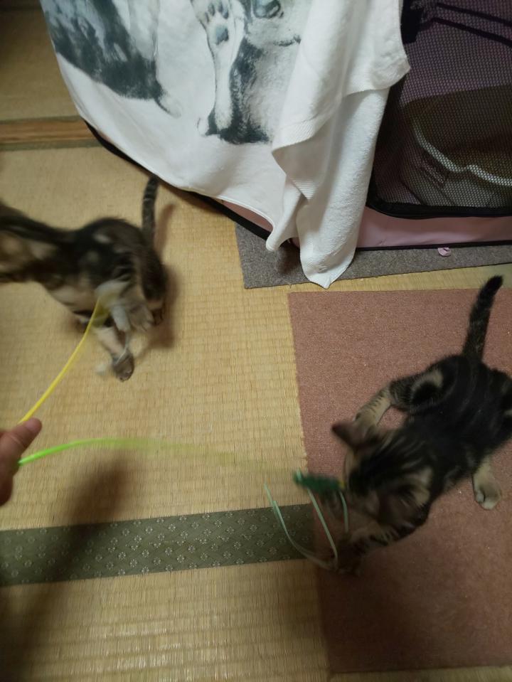 リボンつき猫じゃらしもボロボロになったわ