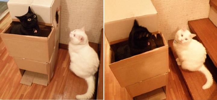 ベンチの上の、ダンボールハウス1号の下に、ボンが入ると、