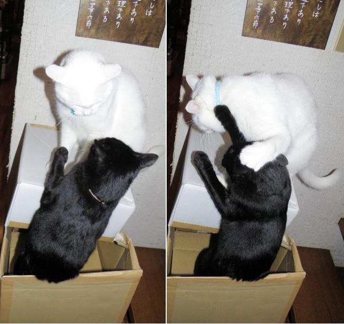 暫し、見詰め合うニャンズ、ソーと寄って見ると、にゃに?って、お邪魔かしら?