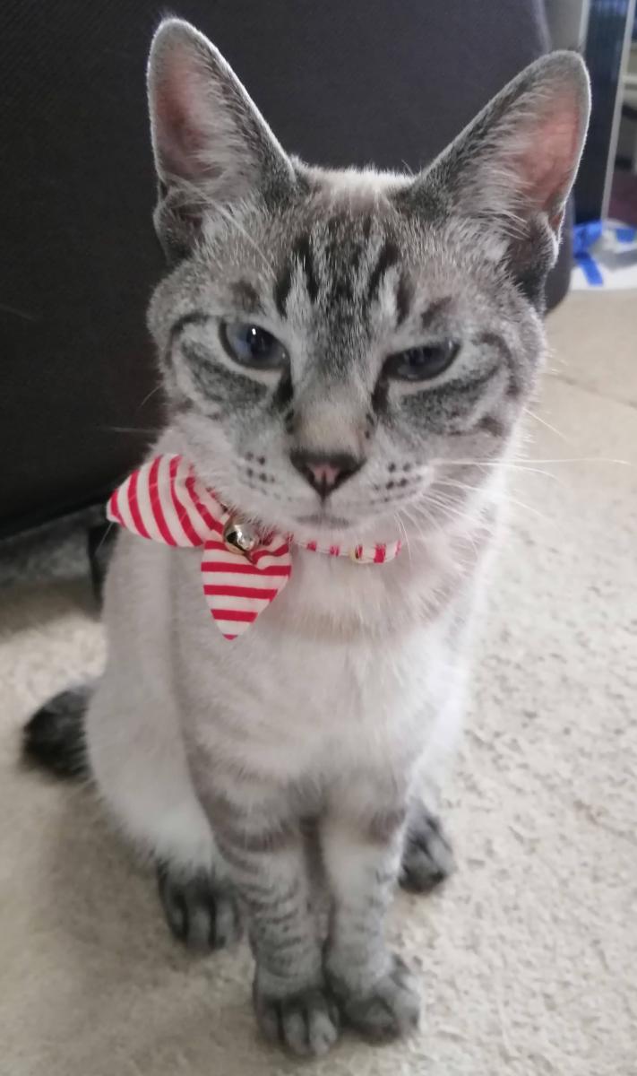 シャルルはこの首輪と初期につけていた和柄の赤い首輪の鈴が気に入っているようです。