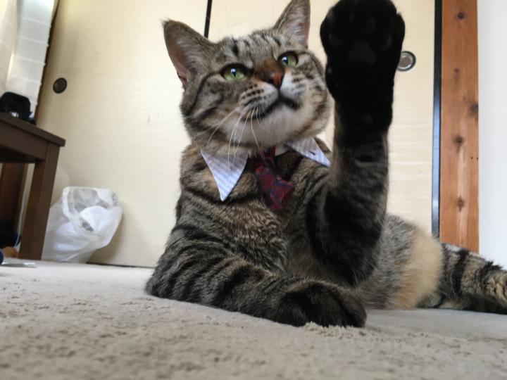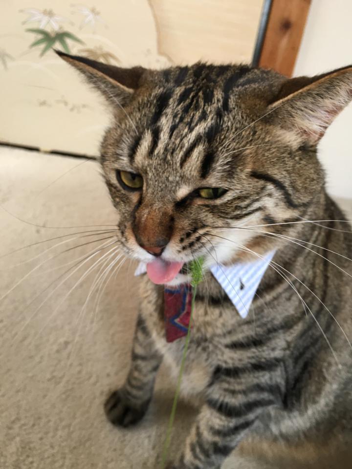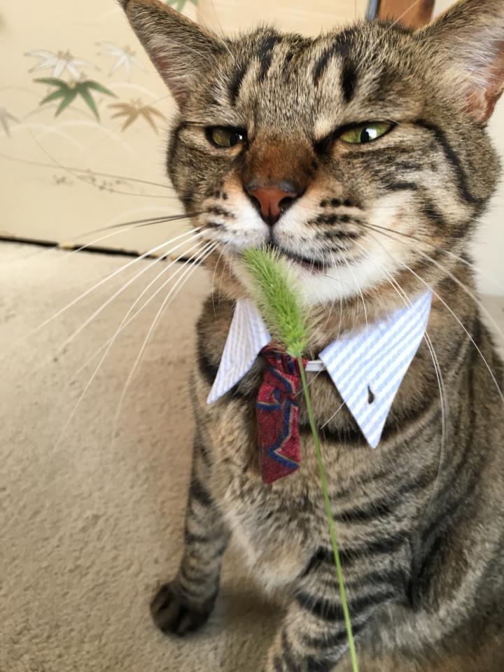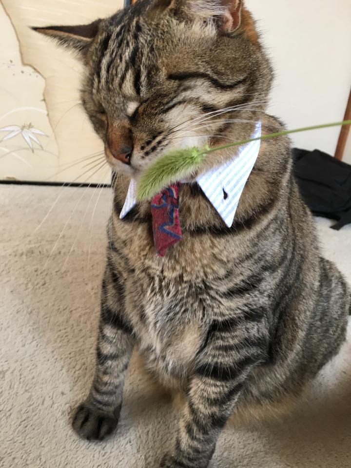 ゲンさん、急に嬉しそうな顔で猫じゃらしにスリスリ笑